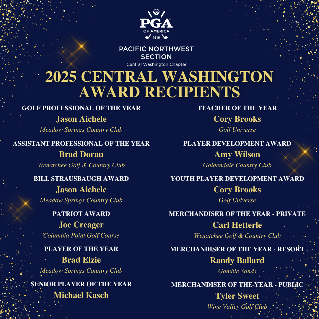 We are proud to announce the 2025 Central Washington Chapter Award Recipients! Congratulations to all of the outstanding PGA Professionals who have been recognized for their achievements.
